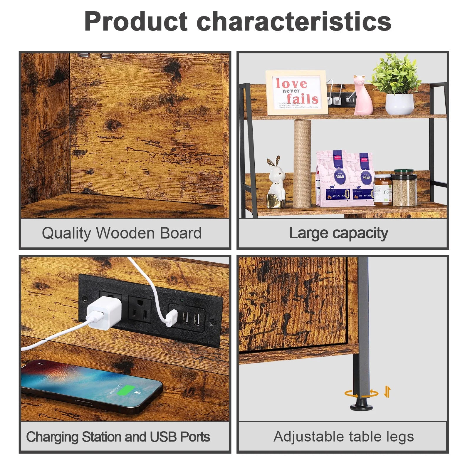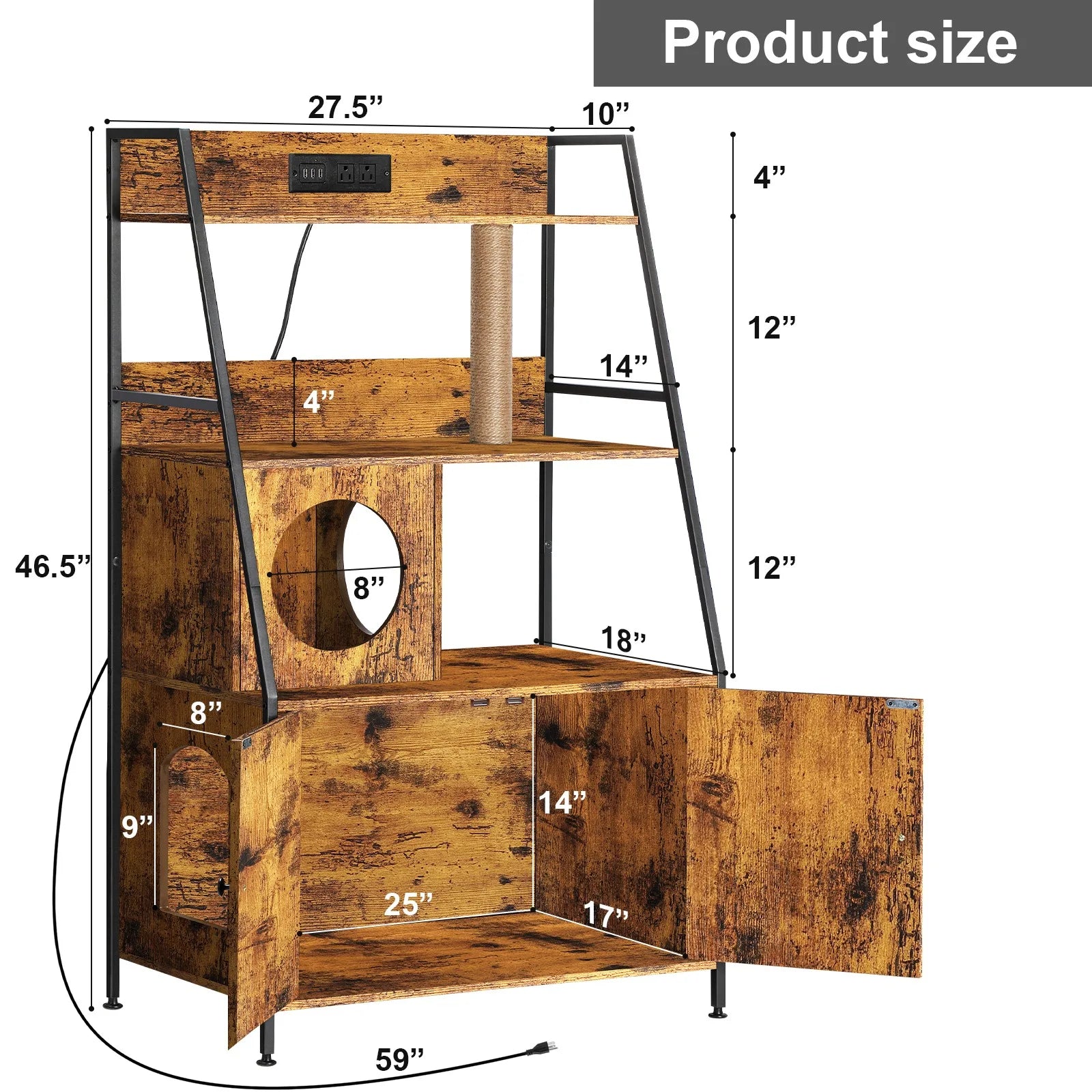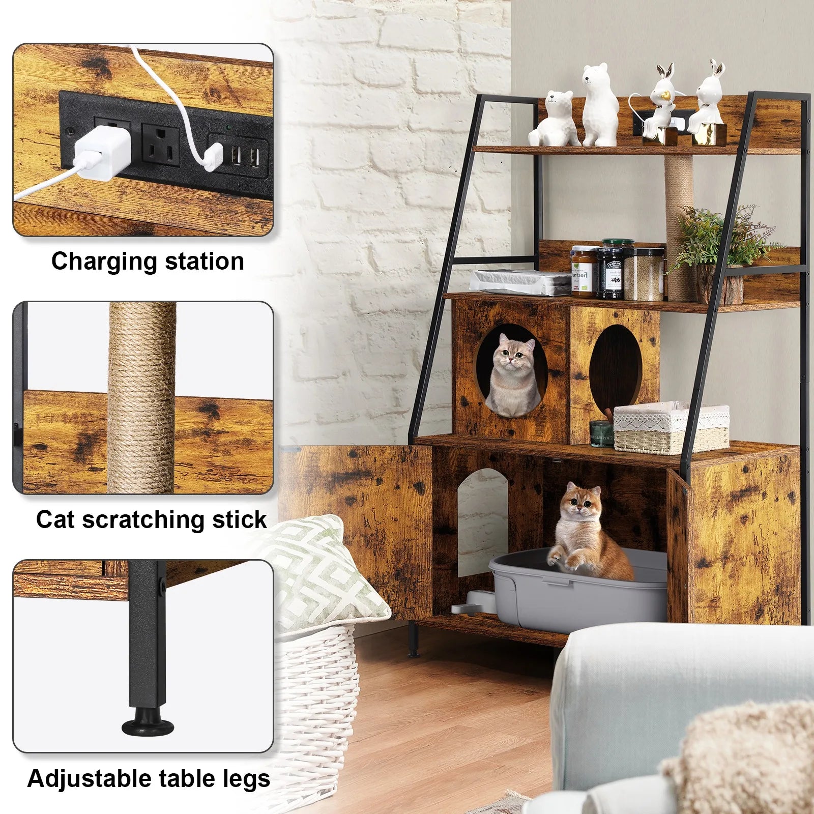 Closure Cat Litter Box Enclosure With Storage Shelves Charging Station